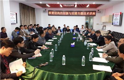 在二個多小時的報告中,聶院士首先深情回憶起二十年前和陳宜言董事長一起在深圳彩虹(北站)橋設計中開展組合橋面系結構創新工作的經歷和寶貴經驗,贊揚了我公司多年以來在堅持以鋼-混凝土組合結構橋梁為主的設計中取得突出成績。隨后聶院士系統介紹了鋼-混凝土組合結構的最新研究成果,通過大量的工程設計案例數據對比,展示了在中、小跨徑橋梁中使用鋼-混凝土組合結構的各項顯著優點,扭轉了設計人員在日常工作中的部分片面認識,深刻理解了設計是工程靈魂的先進理念。
