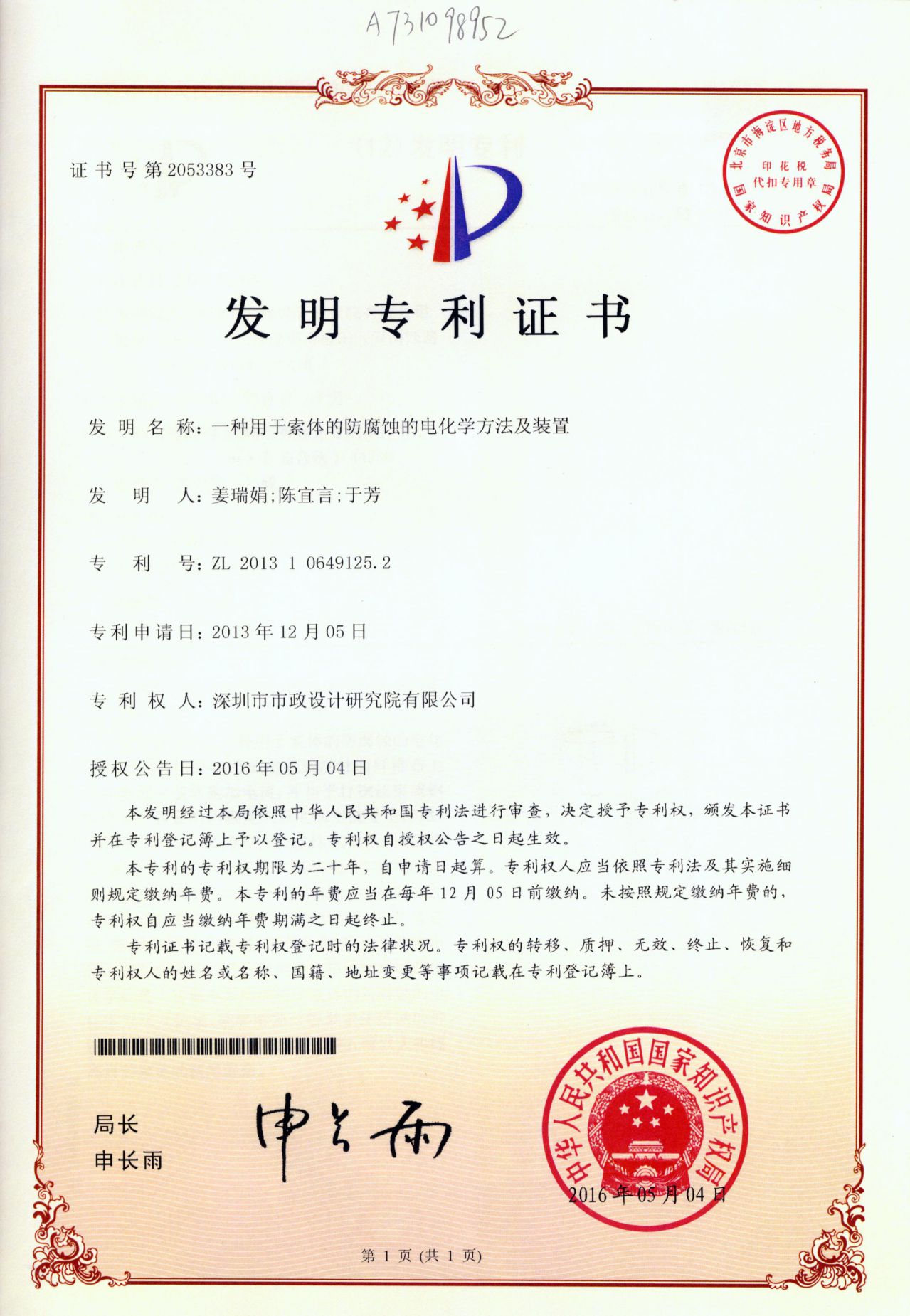 一種用于索體的防腐蝕的電化學方法及裝置
