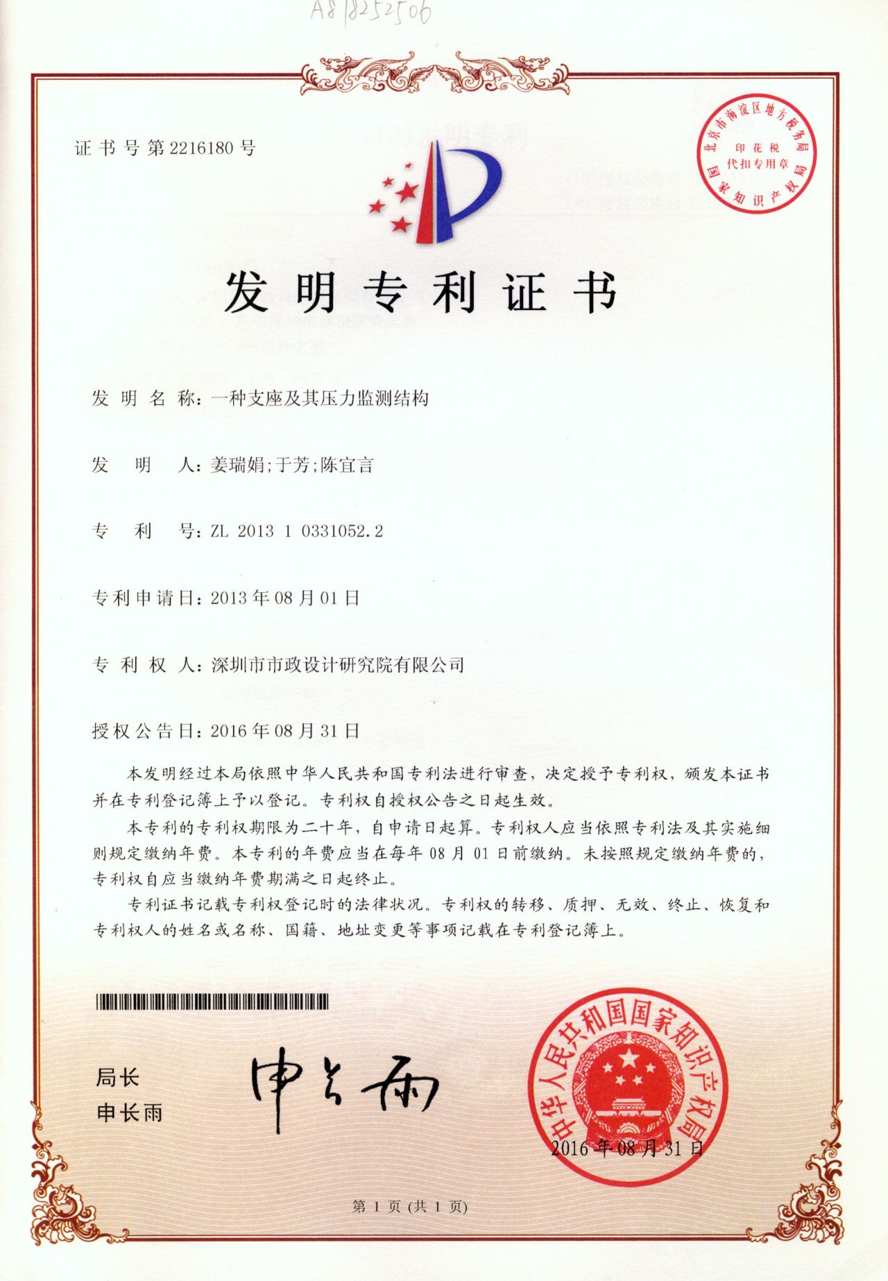 一種支座及其壓力監測結構