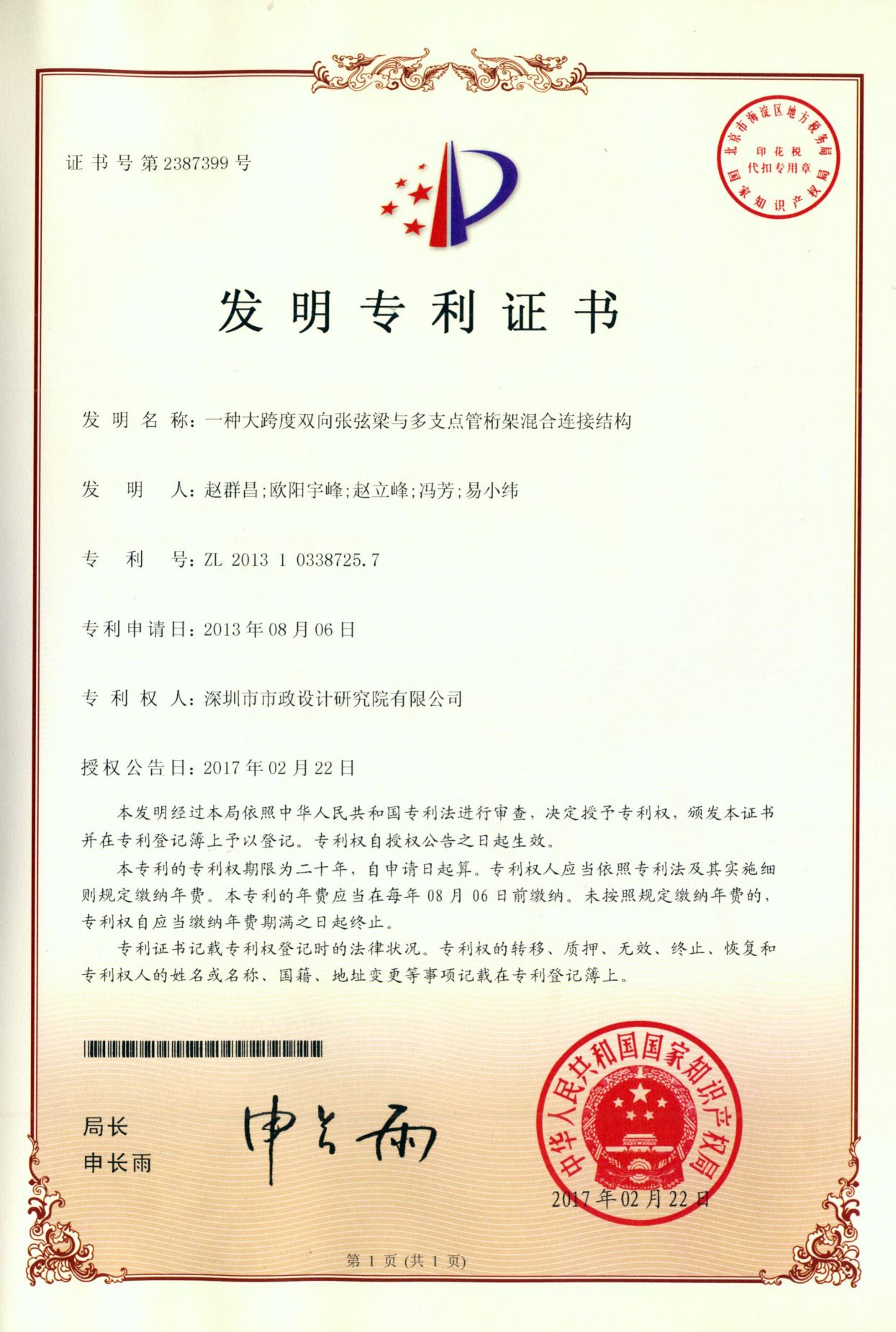一種大跨度雙向張弦梁與多支點管桁架混合連接結構